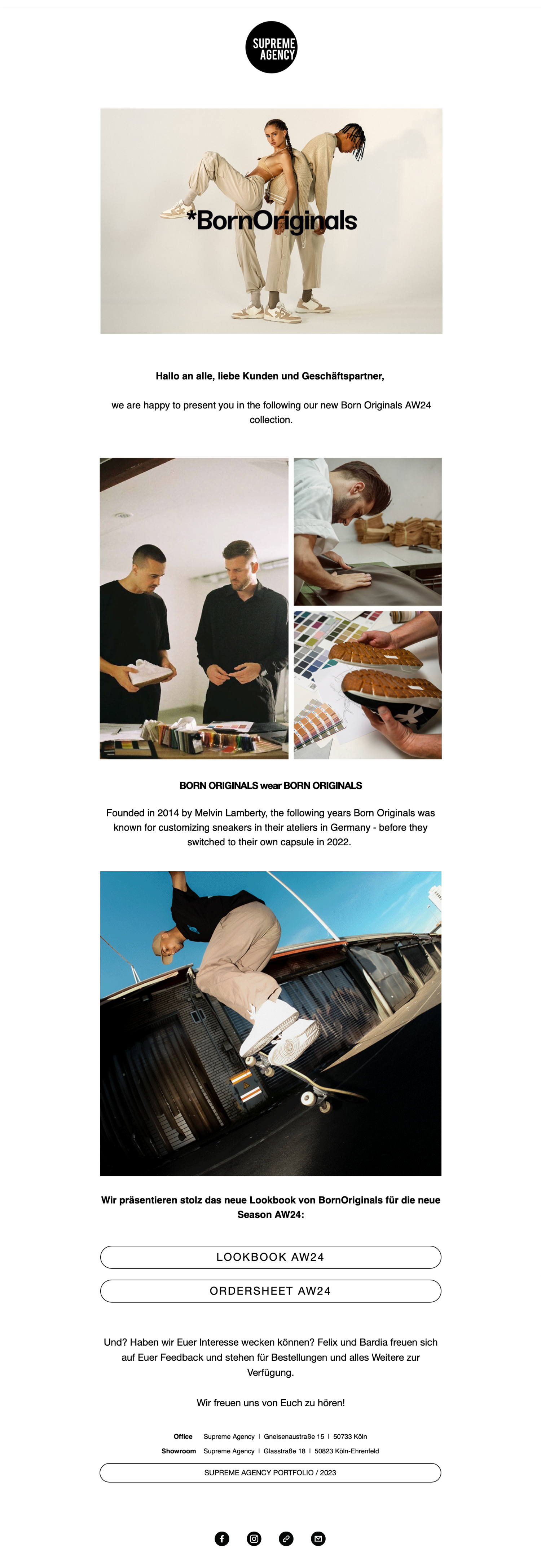 A series of newsletters were made for Supreme Agency – a sales agency for sustainable street wear in Cologne.